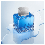O frasco do perfume é elegante e moderno, refletindo a masculinidade e a sofisticação que a fragrância representa. Com linhas limpas e um tom azul profundo que evoca frescor e serenidade, o design do frasco é tanto visualmente atraente quanto funcional, ideal para ser exibido no espaço de cuidados pessoais.