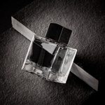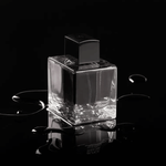 Design ou Praticidade: Frasco preto esfumaçado em formato cúbico, com base esculpida, disponível em 50ml, 100ml ou 200ml.