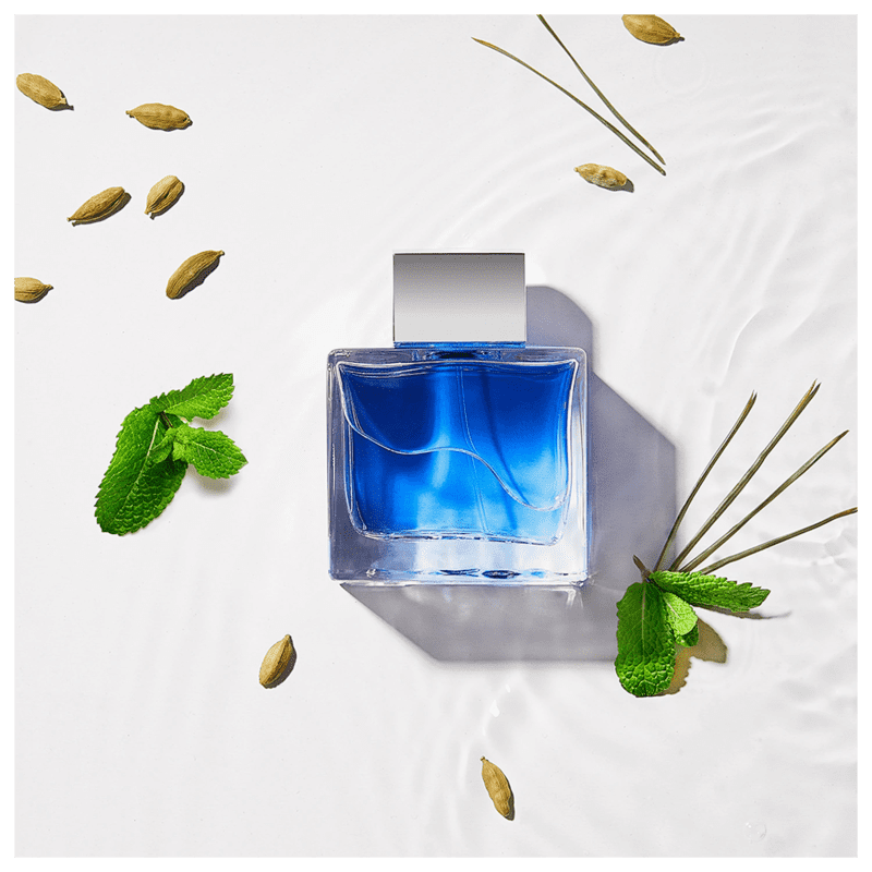 O frasco do Antonio Banderas Blue Seduction Eau de Toilette é moderno e elegante, refletindo a frescura da fragrância. Feito de vidro transparente com uma tonalidade azul, o frasco é simples e sofisticado. A tampa metálica adiciona um toque de classe, enquanto o design clean e as linhas retas transmitem uma sensação de modernidade e frescor.