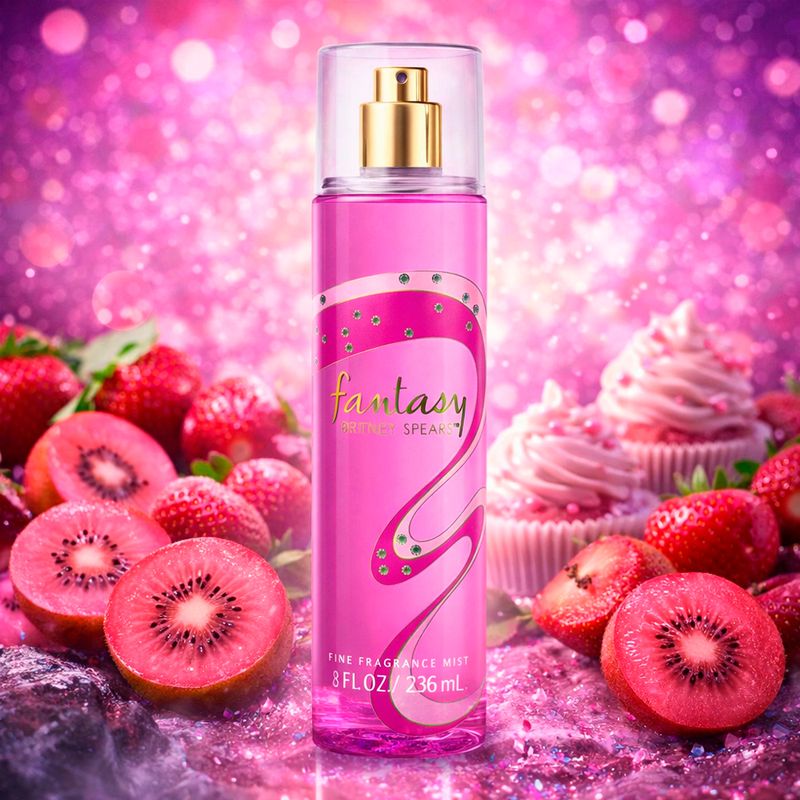 Britney Spears Fantasy Fine Fragrance Mist é ideal para quem deseja uma versão mais leve da fragrância Fantasy. Sua combinação de frutas, flores delicadas e acordes gourmand cria um aroma doce e feminino perfeito para manter a pele perfumada com frescor e suavidade.