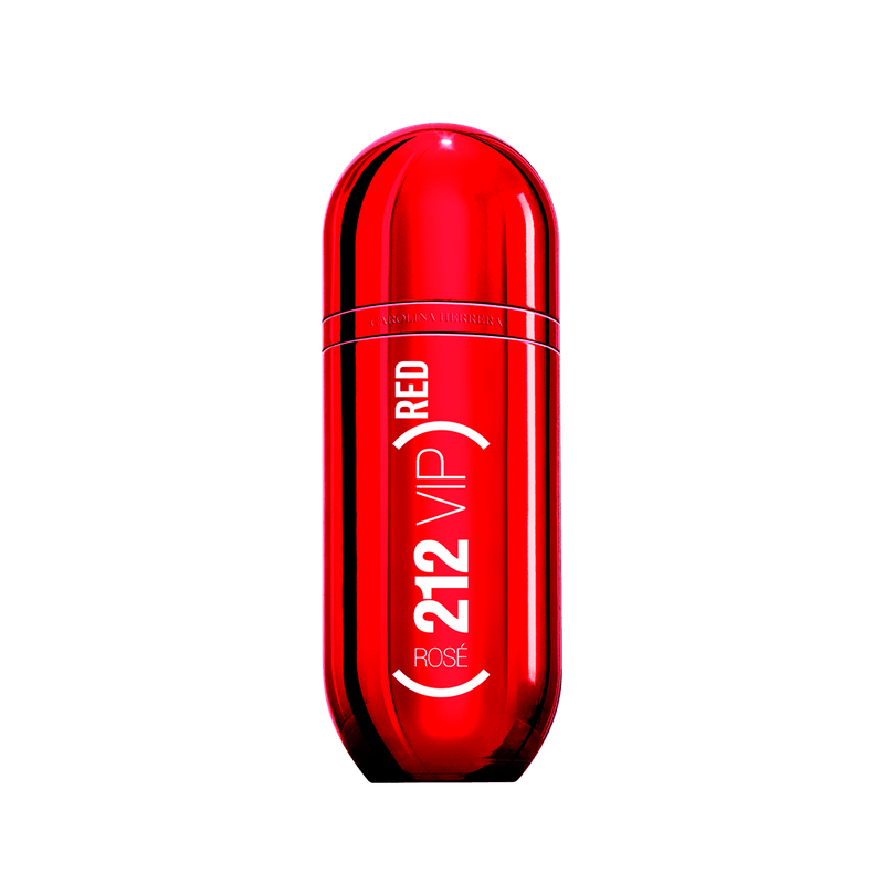 O frasco de Carolina Herrera 212 VIP Rosé Red Edição Limitada Eau de Parfum é uma reinterpretação dinâmica do 212 VIP Rosé, porém, para um efeito mais luxuoso, a silhueta ultra feminina é renderizada em um tom vermelho metalizado, a cor que normalmente identifica o lançamento dos produtos associados à empresa (RED).