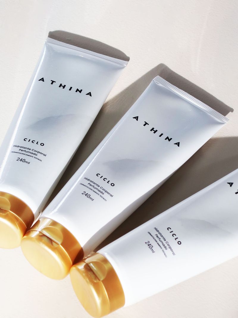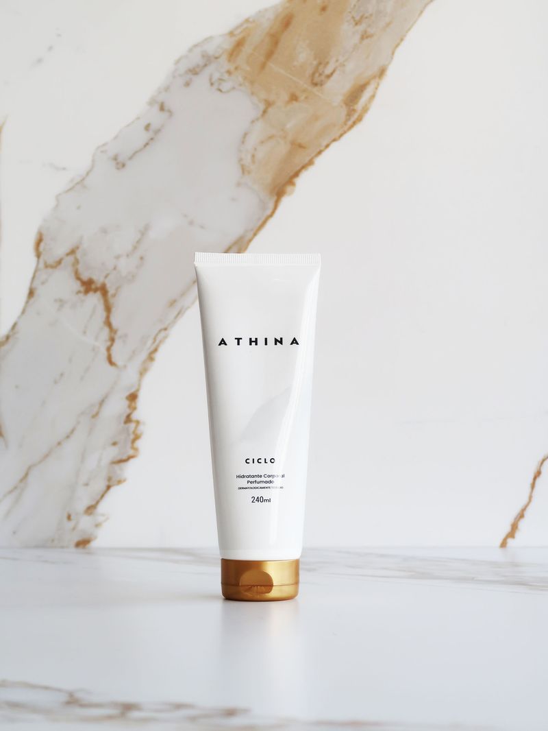 A Ciclo Athina - Loção Hidratante Corporal é uma loção hidratante desenvolvida para proporcionar nutrição, hidratação profunda e um perfume delicado à pele. Com um aroma encantador e textura leve, esta loção é ideal para o cuidado diário da pele, deixando-a macia, suave e perfumada.