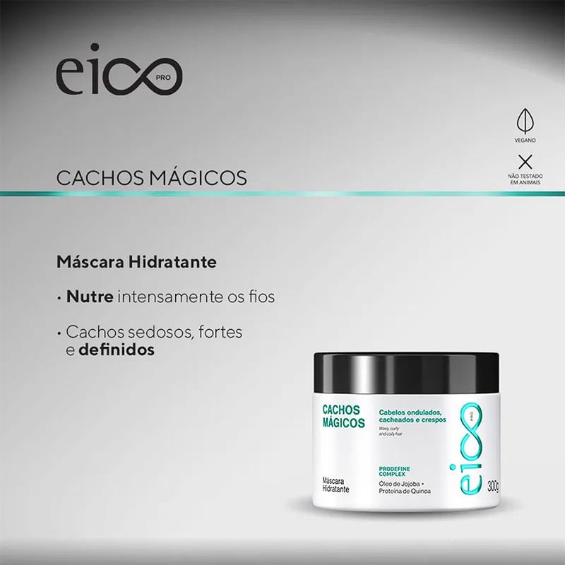 Escolha o Kit Eico Pro Cachos Mágicos para uma magia capilar que define, hidrata e empodera cachos com liberdade ? uma inovação acessível que destaca expertise Eico, ativos naturais e resultados transformadores, tornando cada lavagem uma celebração de textura única, brilho e autoconfiança radiante.