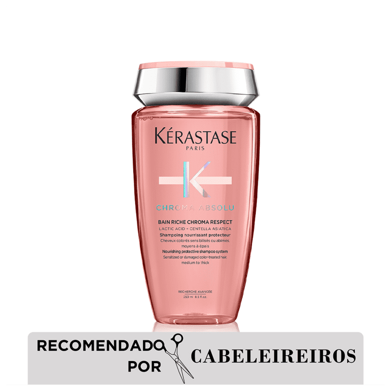 O Kérastase Chroma Absolu Bain Riche Respect é ideal para cabelos coloridos e sensibilizados. Este shampoo luxuoso oferece uma limpeza suave e nutritiva, preservando a cor e a integridade da fibra capilar. Sua fórmula ajuda a reduzir o frizz, hidratar profundamente e devolver o brilho natural aos fios, proporcionando um cabelo leve, macio e vibrante.