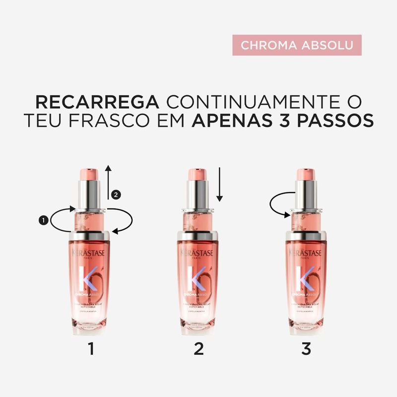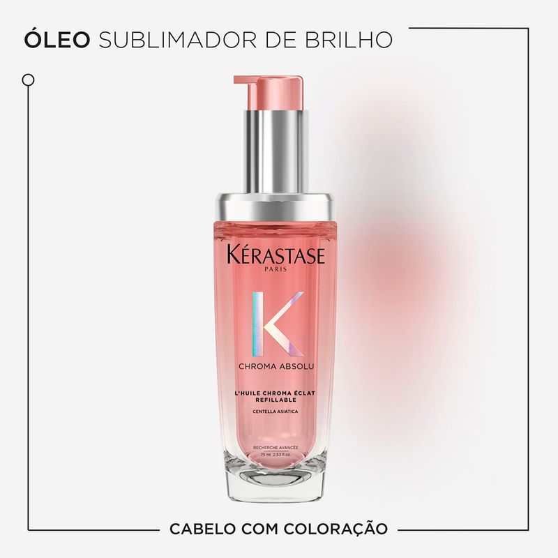 Kérastase Chroma Absolu L'Huile Éclat Radiance é ideal para quem busca manter a cor vibrante, reduzir o frizz e proporcionar brilho duradouro aos cabelos, transformando cada aplicação em um tratamento sensorial de alto padrão.
