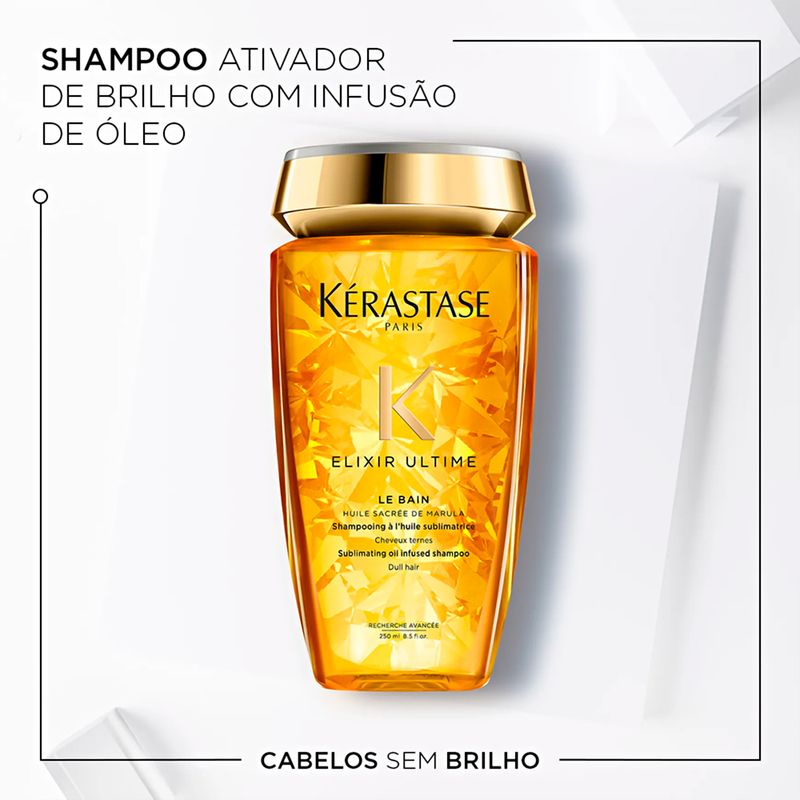 Kérastase Elixir Ultime Le Bain é o shampoo perfeito para quem busca cabelos hidratados, leves e com um brilho incomparável. Sua fórmula rica em óleos preciosos nutre profundamente os fios, promovendo uma limpeza suave e um acabamento luxuoso.