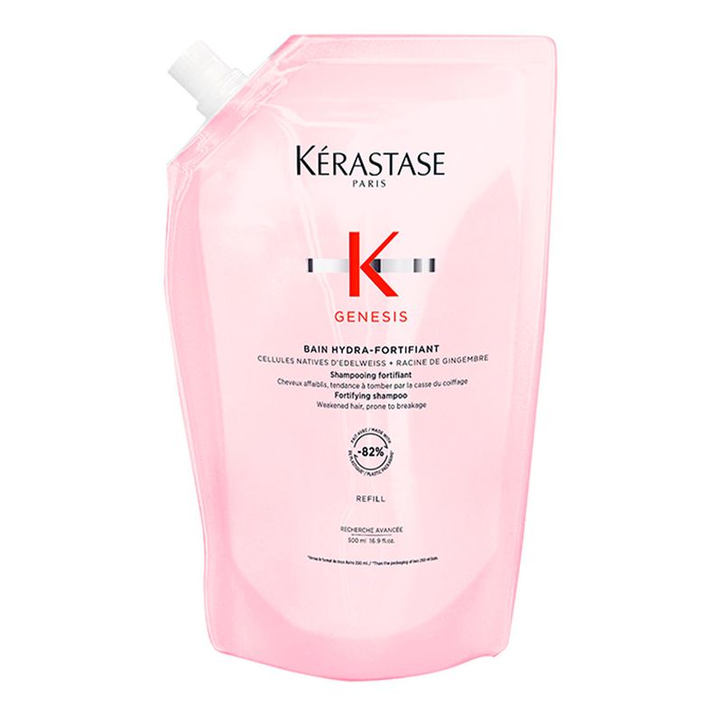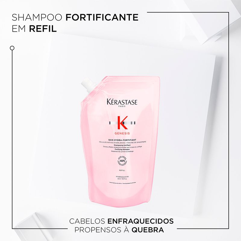 Kérastase Genesis Bain Hydra-Fortifiant é um shampoo antiqueda fortificante desenvolvido para cabelos enfraquecidos, normais, finos ou oleosos com tendência à quebra e queda. Sua fórmula ultra-delicada purifica o couro cabeludo e os fios, removendo o excesso de oleosidade e impurezas sem agredir, enquanto reforça a fibra capilar para melhorar resistência e reduzir a queda causada pela quebra. Enriquecido com uma combinação potente de células nativas de Edelweiss e extrato de raiz de gengibre, este shampoo fortalece a estrutura dos fios com ação antioxidante e protetora, proporciona hidratação, suavidade e brilho natural, deixando o cabelo leve, macio e preparado para os próximos passos do tratamento capilar.