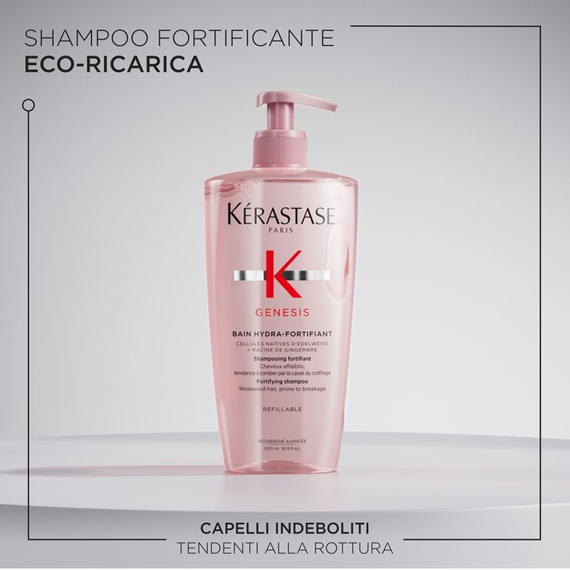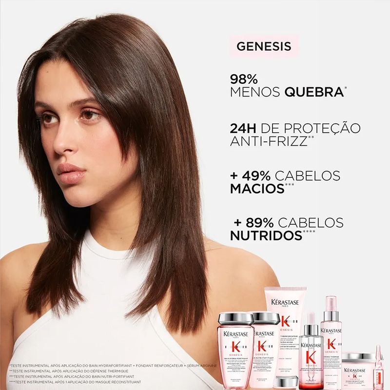 Escolha Kérastase Genesis Bain Hydra-Fortifiant 500ml para um shampoo que protege e fortalece cabelos enfraquecidos com delicadeza profissional, unindo hidratação leve a resultados anti-queda comprovados. Com sua fórmula inovadora e benefícios transformadores, oferece exclusividade, força renovada e confiança diária, elevando o cuidado capilar a um nível de resistência e beleza únicas.