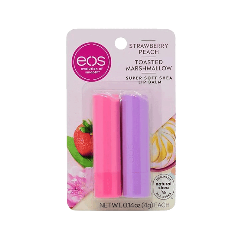 Kit EOS Lip Balm Stick - Strawberry Peach 4g + Toasted Marshmallow 4g