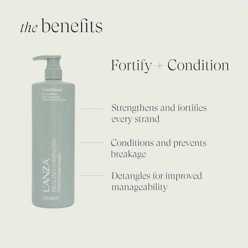 L'anza Healing Strength Conditioner é um condicionador capilar desenvolvido para fortalecer e restaurar cabelos fragilizados e danificados. Sua fórmula nutritiva combina tecnologia avançada de reparação com ingredientes que ajudam a reconstruir a estrutura da fibra capilar, promovendo fios mais resistentes, hidratados e com aparência saudável. O condicionador atua na reposição de nutrientes essenciais, auxiliando na redução da quebra e melhorando a elasticidade dos fios. Além de fortalecer, também facilita o desembaraço e proporciona maciez e brilho. Ideal para rotinas de tratamento capilar, o produto ajuda a manter os cabelos mais fortes, protegidos e revitalizados.