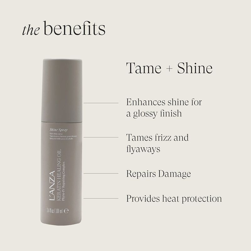 Escolha o L'Anza Keratin Healing Oil Phyto-IV Repairing Shine Spray para um acabamento de luxo que une reparação, brilho espelhado e proteção invisível ? uma inovação que destaca tecnologia Phyto-IV, resultados imediatos e leveza absoluta, transformando cada borrifada em um toque final de perfeição e autoconfiança radiante.