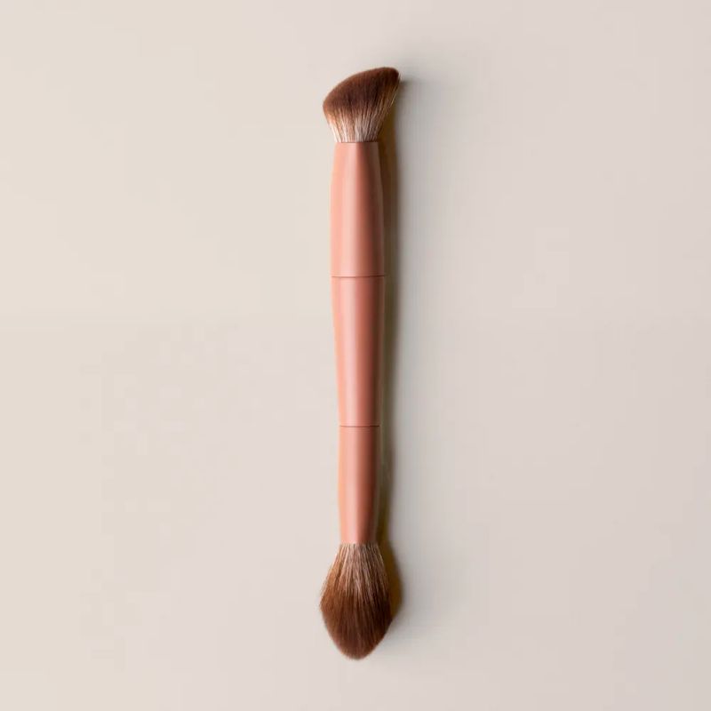 Beneficios: Pincel multifuncional de ponta dupla, ideal para aplicação de produtos líquidos, cremosos e em pó, com cerdas sintéticas ultramacias e proposta de acabamento profissional.