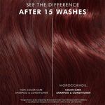 Após o shampoo Moroccanoil Color Care, aplique o condicionador nos comprimentos e pontas dos cabelos úmidos. Deixe agir por 2-3 minutos, massageando suavemente, e enxágue completamente. Use regularmente para resultados otimizados.