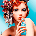 Embalagem: Frasco de vidro colorido com spray, inspirado em Olívia Palito, reciclável, com design lúdico em todas as volumetrias.