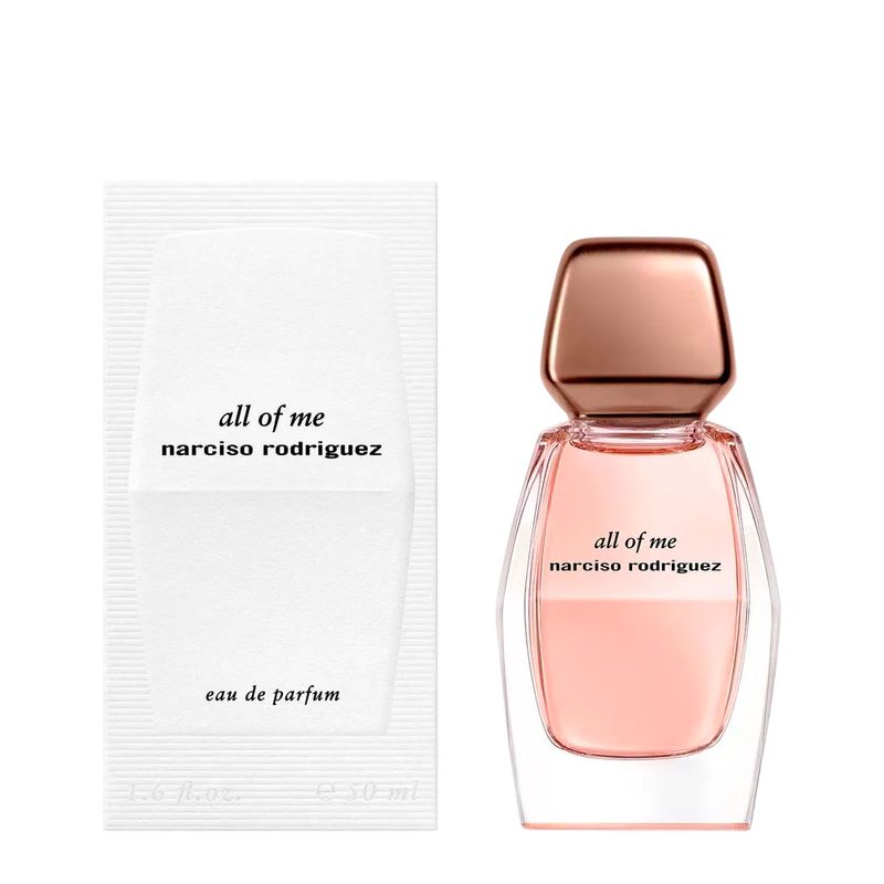 O Narciso Rodriguez All Of Me Eau de Parfum é um perfume feminino floral amadeirado almiscarado, lançado em 2023. Criado para celebrar a individualidade e a autoexpressão, esta fragrância prismática combina a icônica rosa centifolia com o ousado gerânio bourbon, uma nota tradicionalmente usada em perfumes masculinos, resultando em um aroma único e multifacetado. A composição abre com a essência fresca de magnólia, seguida por um coração de rosa centifolia, gerânio bourbon, peônia branca, íris negro poudré e tuberosa envolvente. Na base, seis notas distintas de almíscar branco criam um efeito segunda pele, complementadas por sândalo quente e âmbar aveludado, que conferem um rastro rico e duradouro. Disponível nos volumes de 30ml, 50ml, 90ml e 150ml, o perfume vem em um frasco prismático com linhas geométricas suaves, refletindo a multiplicidade da mulher que o usa, com tons suaves e design elegante. Vegano, com 88% de ingredientes de origem natural, é ideal para uso diário ou ocasiões especiais, especialmente em climas amenos.