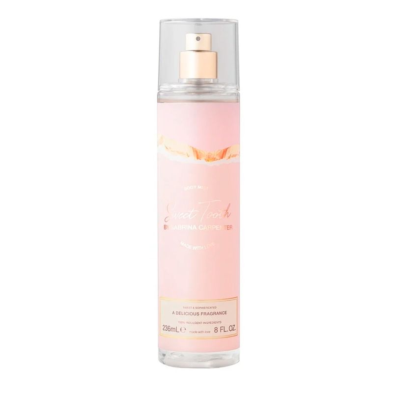 Sabrina Carpenter Sweet Tooth Body Mist é ideal para quem busca uma fragrancia gourmand leve e viciante para acompanhar todos os momentos do dia, deixando a pele perfumada com suavidade, frescor e um toque doce que conquista desde a primeira borrifada.