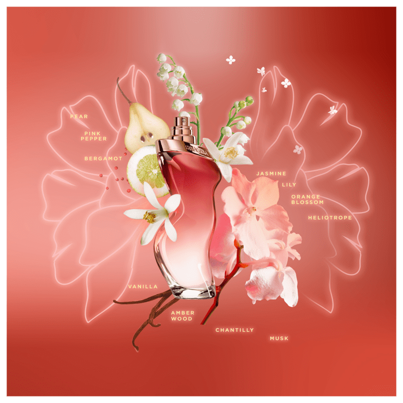 Notas de topo: Pera, Pimenta Rosa e Bergamota.