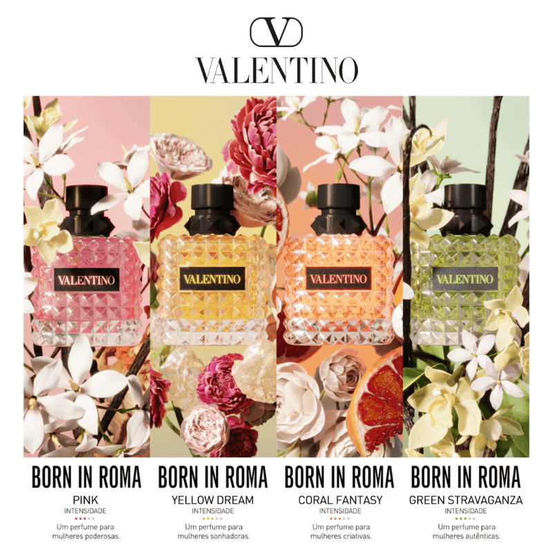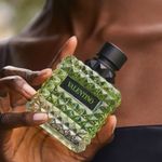 O Valentino Donna Born In Roma Green Stravaganza Eau de Parfum - Perfume Feminino 100ml, 50ml e 30ml é uma fragrância floral ambarada amadeirada, lançada em 2024 pela Maison Valentino. Inspirada nos exuberantes jardins de Roma, combina notas frescas e quentes, ideal para mulheres que buscam um aroma vibrante e sofisticado. Perfeito para ocasiões especiais, encontros românticos, primavera, verão e climas quentes, apresenta notas de chá lapsang souchong, jasmim absoluto e extrato de baunilha. O frasco com design rockstud, em verde vibrante com detalhes em preto, reflete a estética ousada e extravagante da marca. Disponível em 100ml, 50ml e 30ml, é ideal para uso prolongado, ocasiões diárias ou viagens. Vegano e cruelty-free, é uma escolha radiante para momentos marcantes.