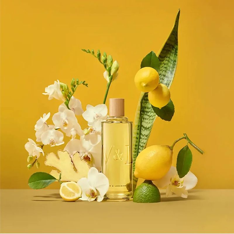Benefícios: Frescor cítrico motivador, sensação de energia e confiança, hidratação leve na pele, equilíbrio aromaterapêutico, aroma natural e vegano, versatilidade para reaplicações diárias.