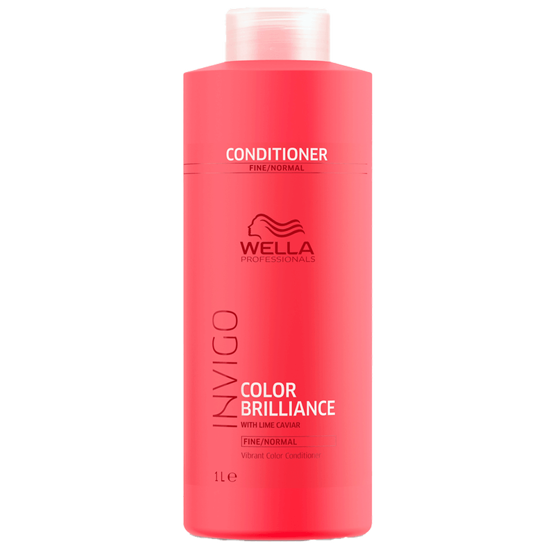 O Wella Professionals Invigo Brilliance Vibrant Color Conditioner - Condicionador 1000ml é ideal para quem busca proteção e brilho em cabelos coloridos. Com Color Brilliance-Blend? e caviar de limão, realça a cor, hidrata e suaviza, perfeito para uso semanal. O frasco prático reforça a qualidade profissional da marca.