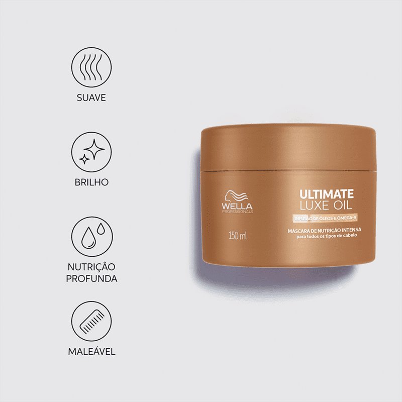 O Wella Professionals Ultimate Luxe Oil Máscara Capilar é um tratamento de luxo intensivo projetado para proporcionar nutrição profunda e restauração aos cabelos. Com uma formulação avançada enriquecida por uma mistura de óleos preciosos, esta máscara capilar oferece benefícios notáveis para cabelos secos, danificados ou que necessitam de cuidados intensivos.