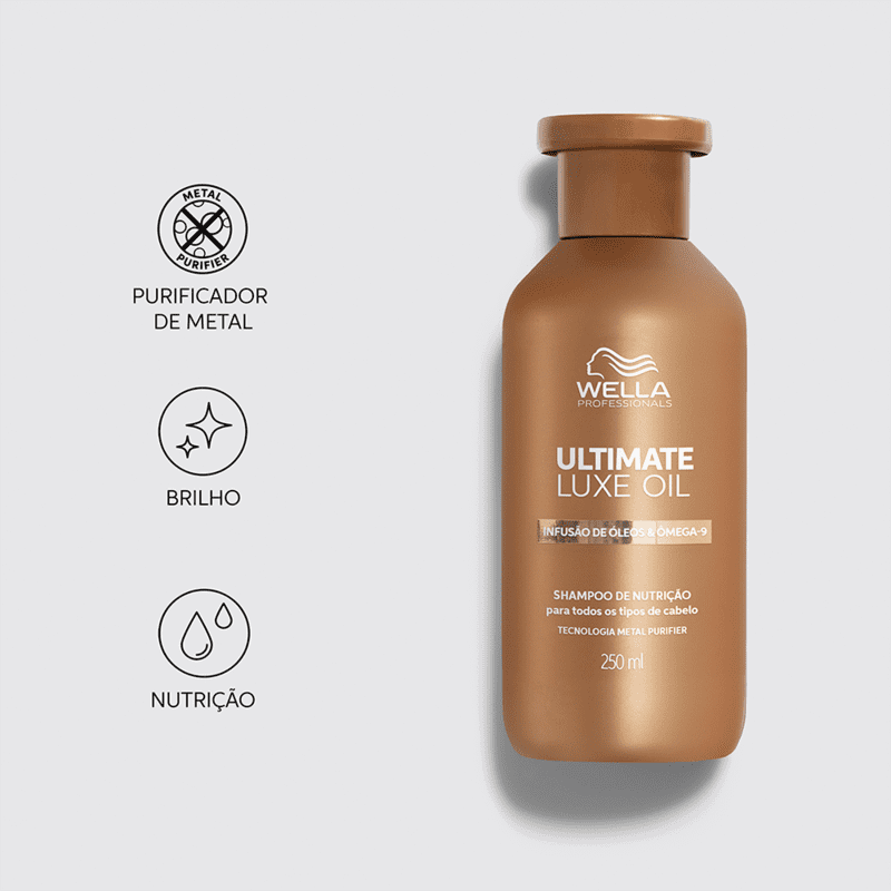 O Wella Professionals Ultimate Luxe Oil - Shampoo é ideal para quem busca limpeza luxuosa e nutrição em cabelos secos ou danificados. Com óleo de camélia, chá branco e argan, limpa suavemente, hidrata profundamente e proporciona brilho, perfeito para rotinas diárias. O frasco prático reforça a qualidade profissional da marca.